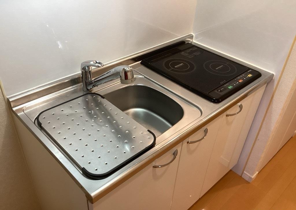 キッチン類お玉、まな板、ガスキッチン、ガスコンロ、キッチン洗剤、システムキッチン、スポンジ、スポンジ入れ、フライパン、フライ返し、三角コーナー、食器類、鍋、布巾、包丁、ボール・ザル
