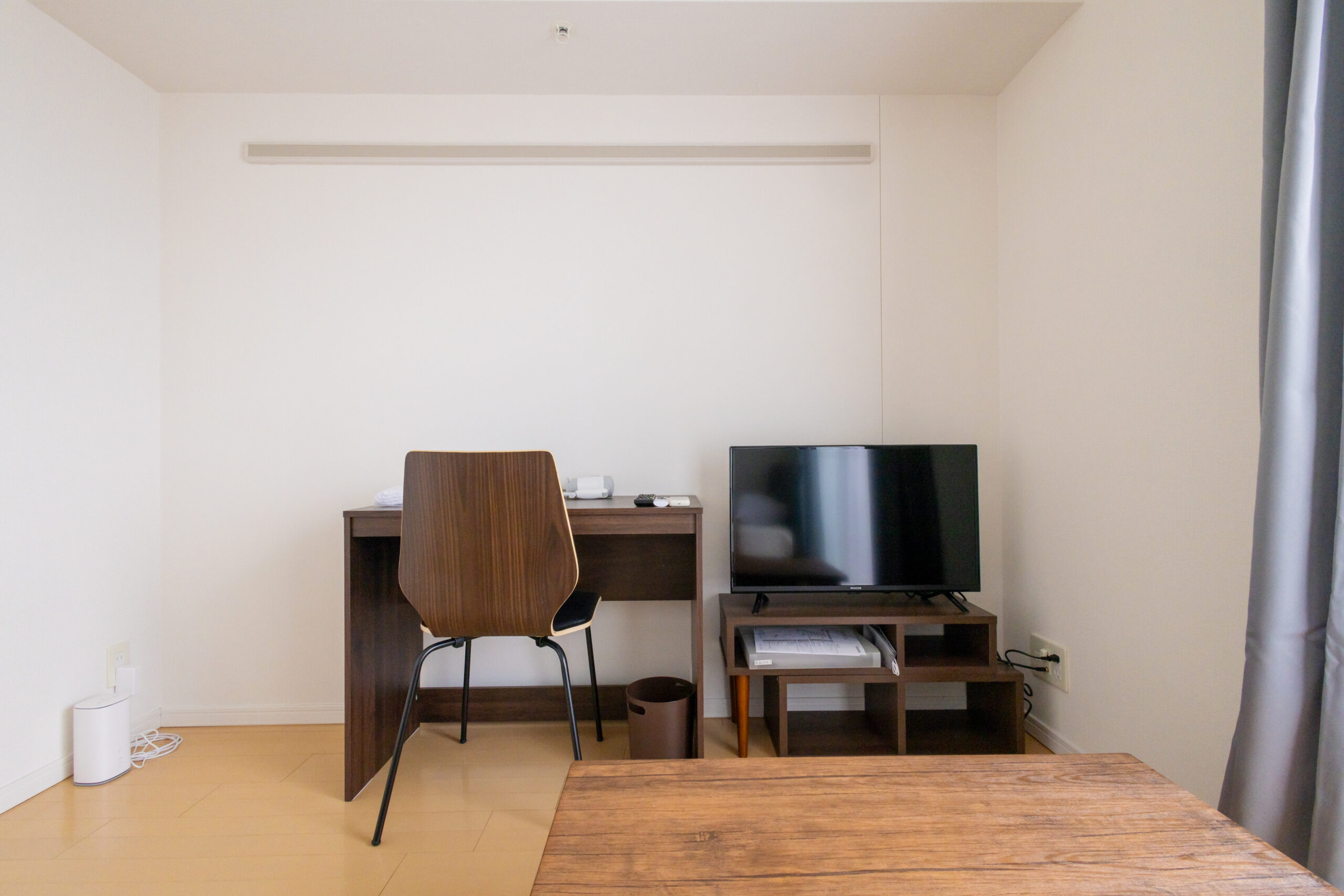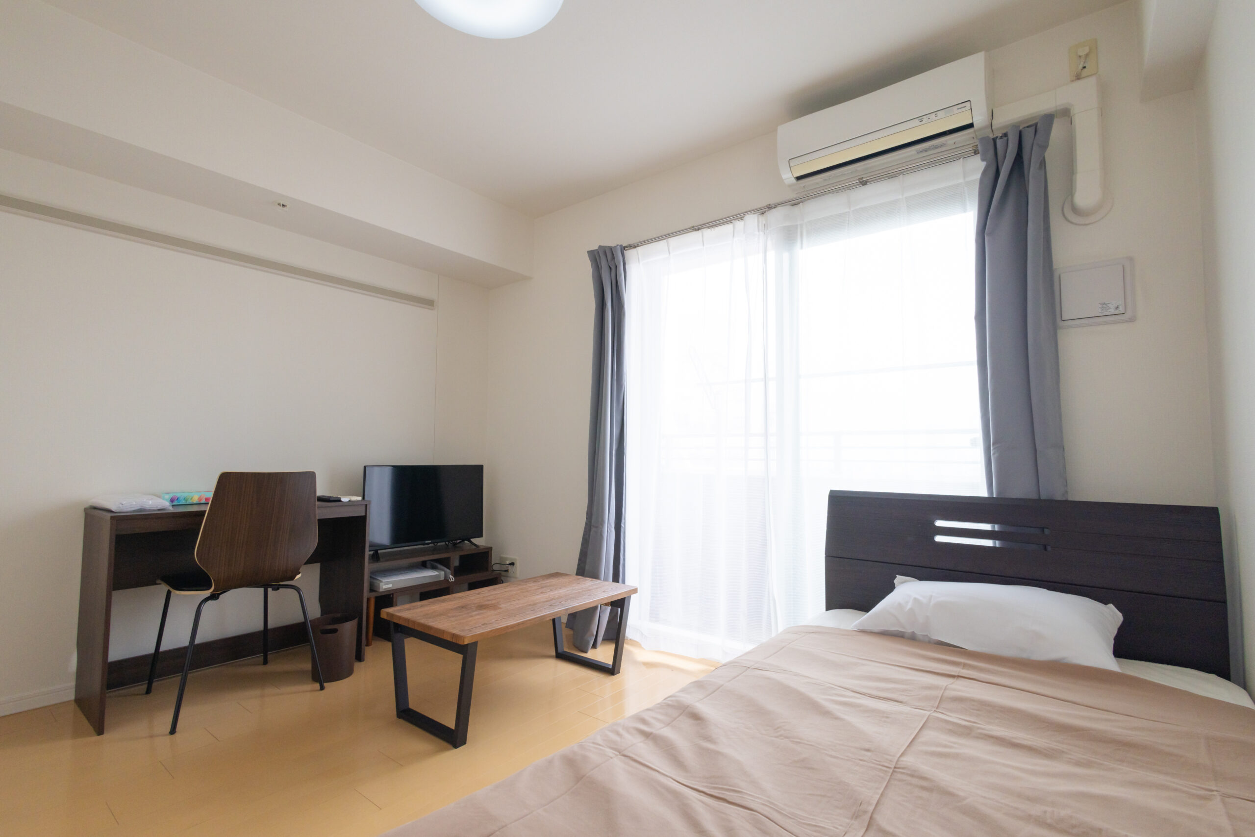 | 家具 | イス、カーテン付き、シーツ類、テーブル、テレビ台、デスク、ベッド、寝具一式 |