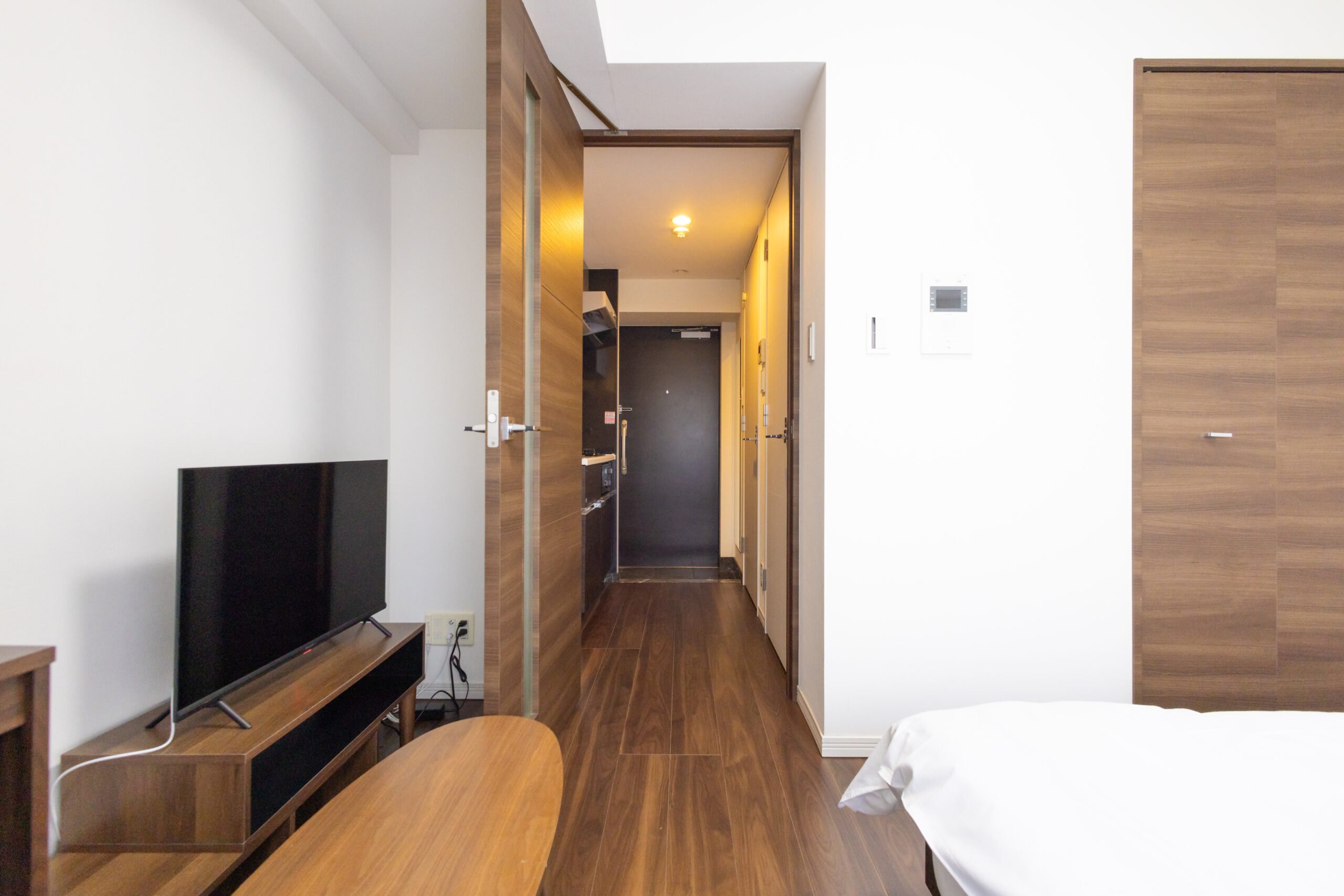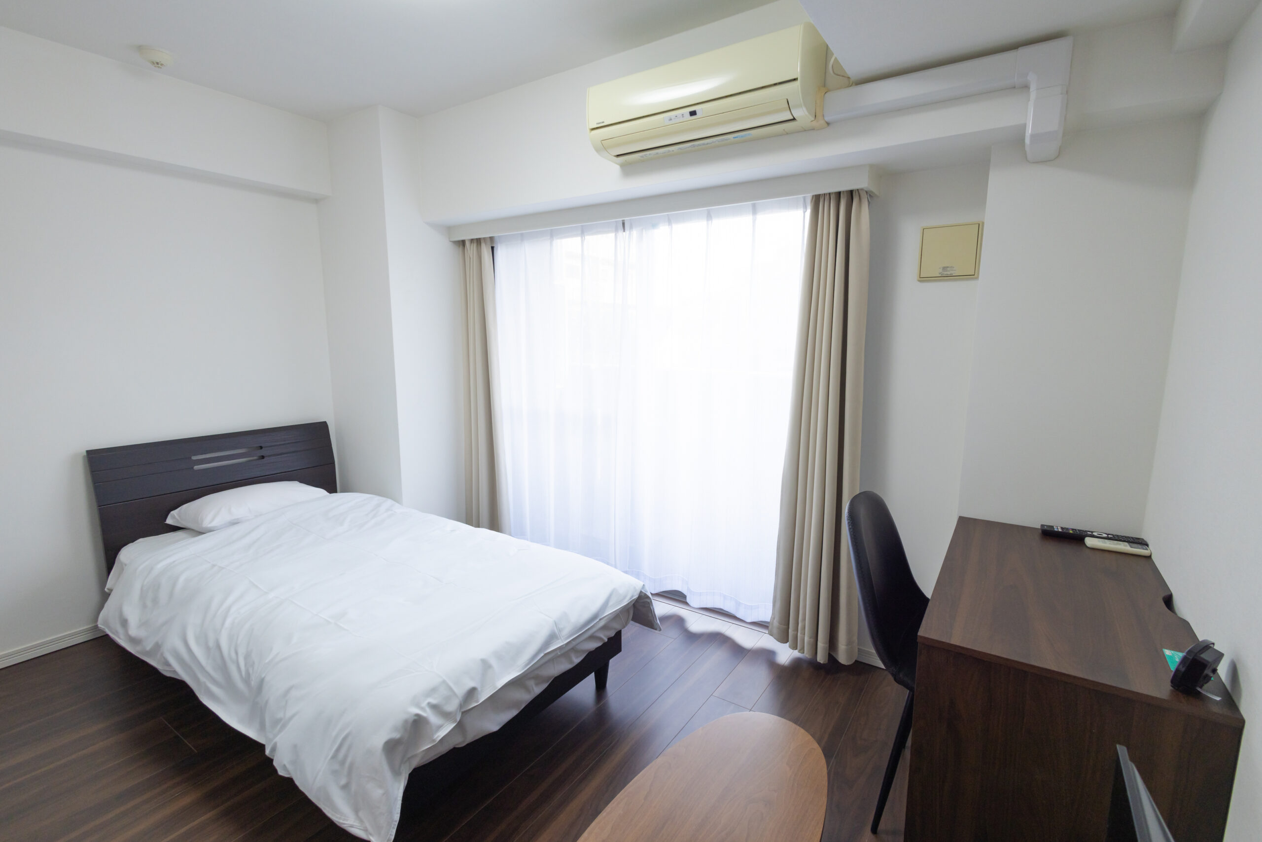 | 家具 | イス、カーテン付き、シーツ類、テーブル、テレビ台、デスク、ベッド、寝具一式 |
