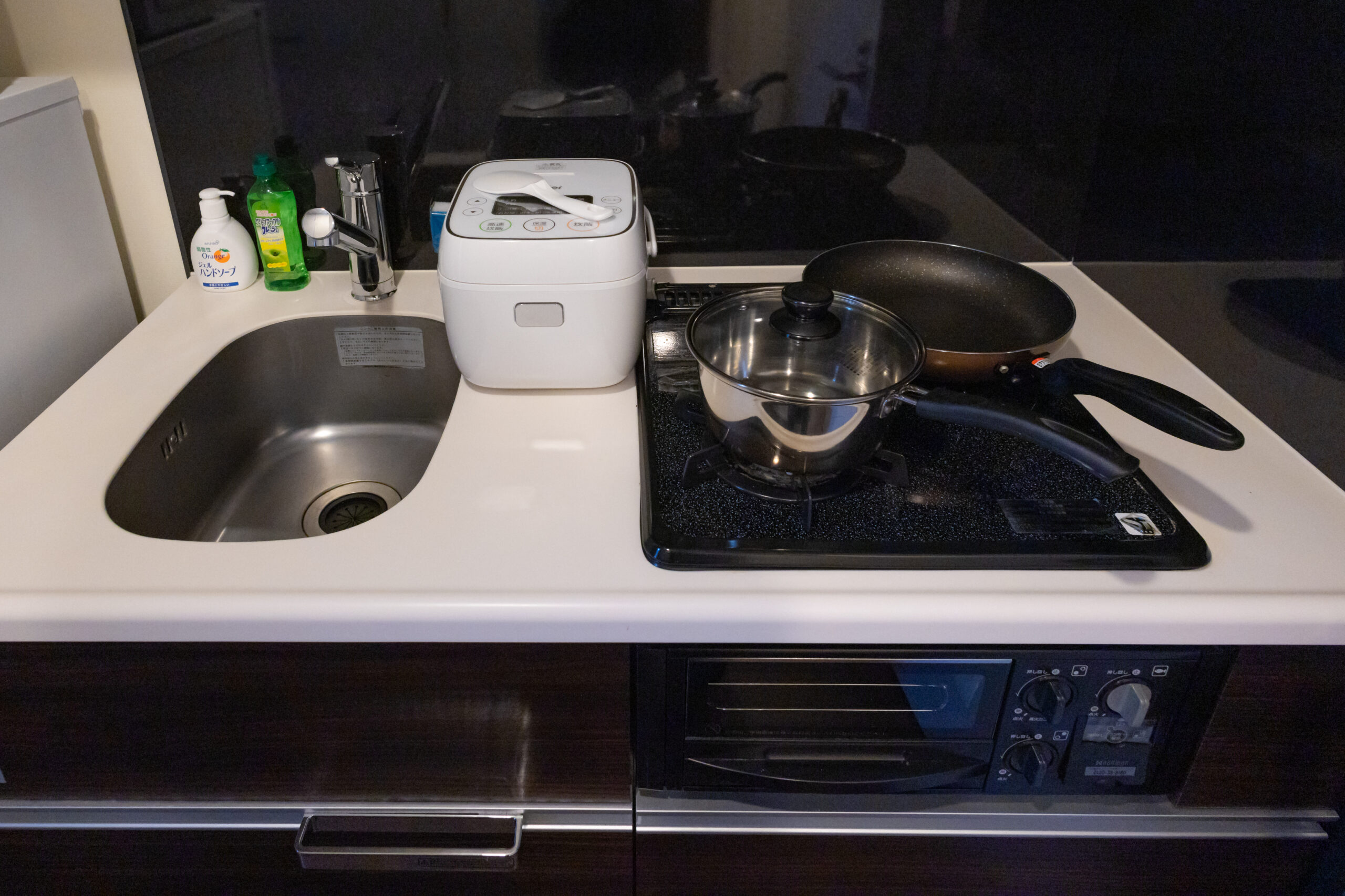 | キッチン類 | お玉、まな板、ガスキッチン、ガスコンロ、システムキッチン、スポンジ、スポンジ入れ、フライパン、フライ返し、三角コーナー、食器類、鍋、布巾、包丁、ボール・ザル |
