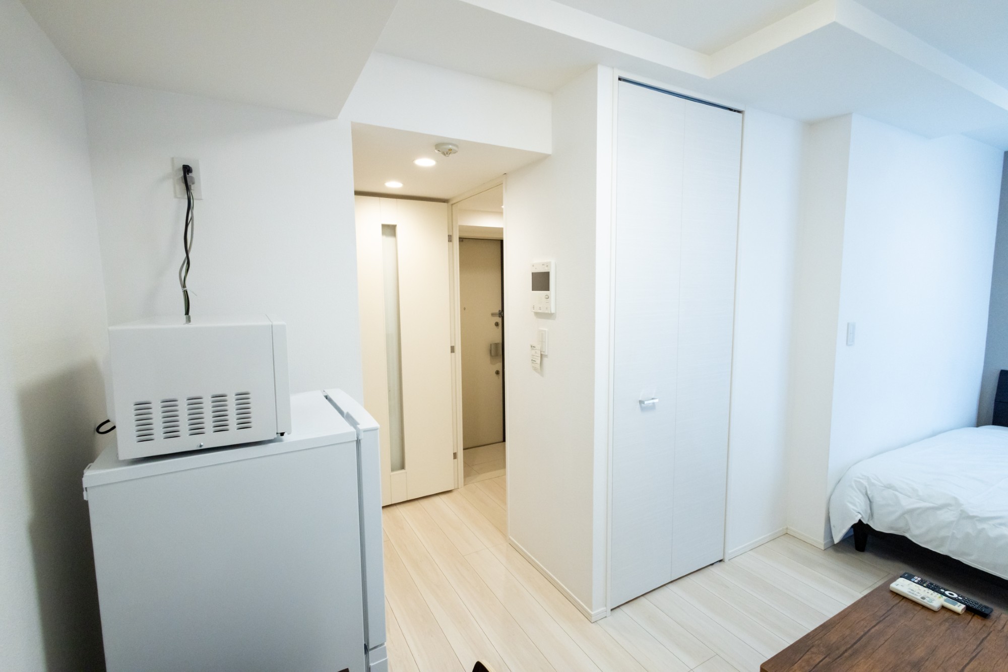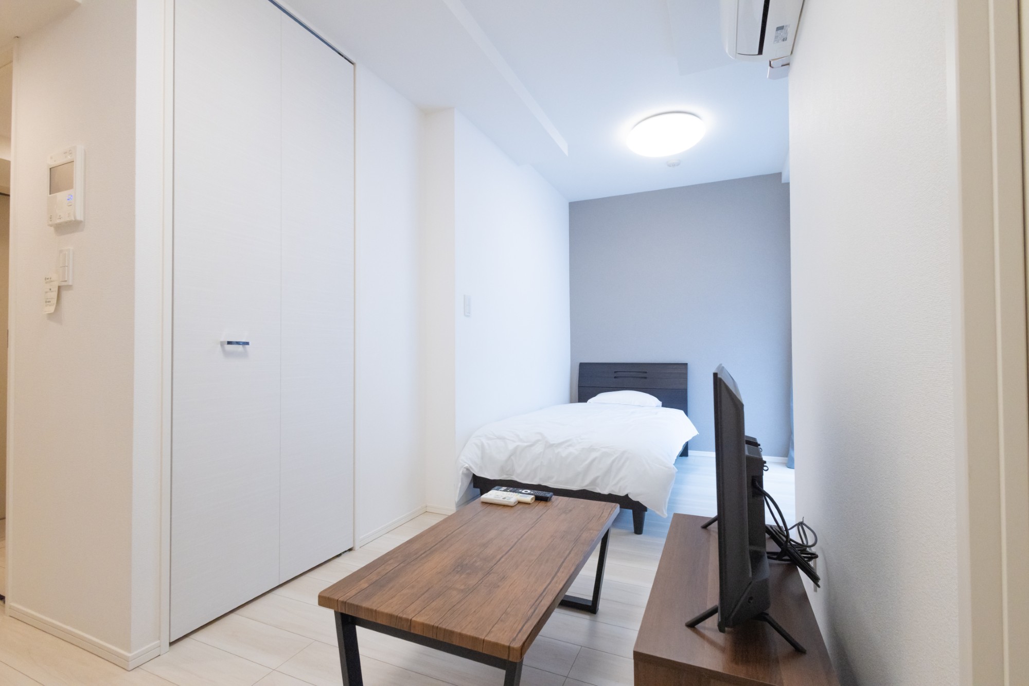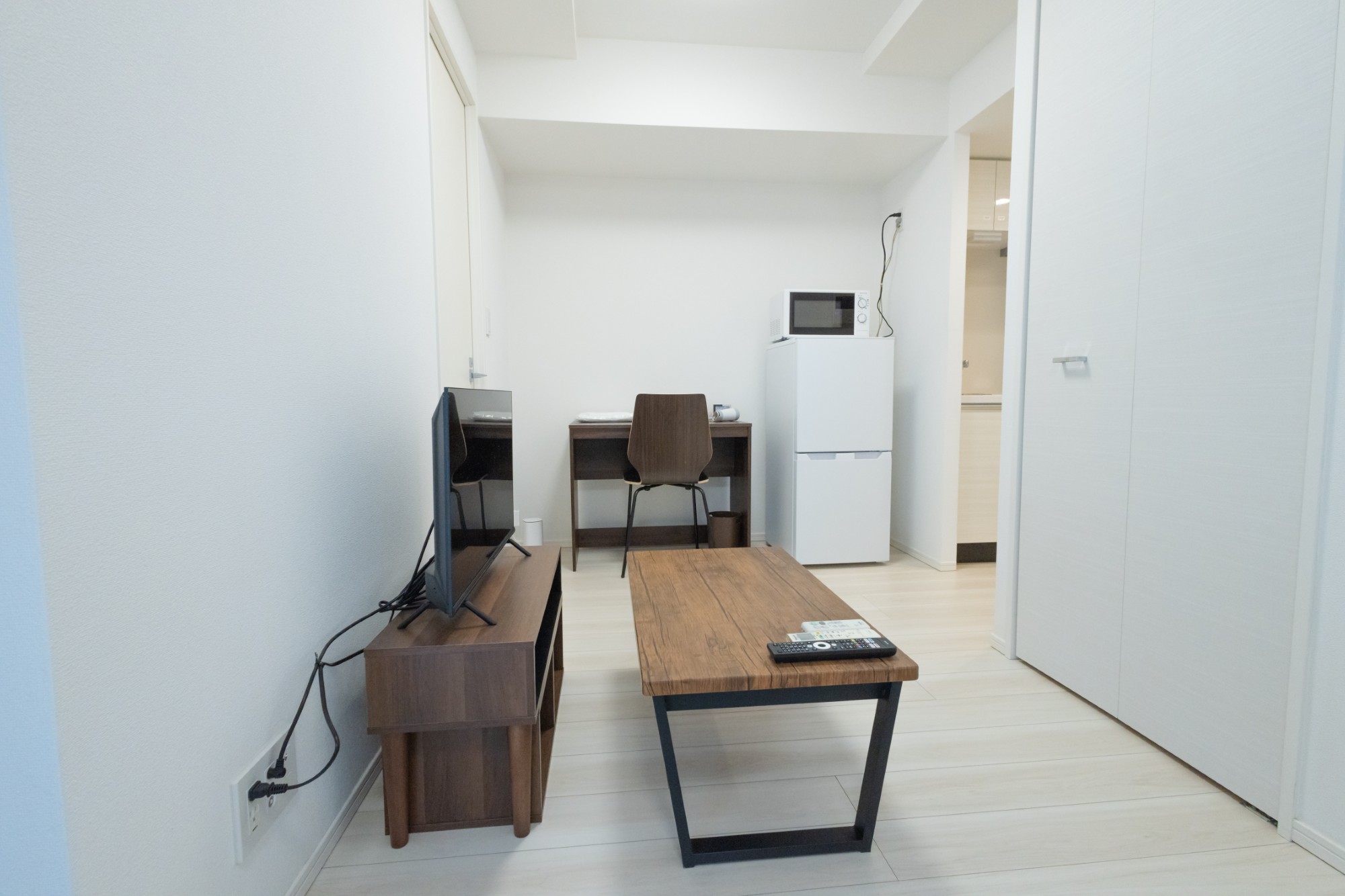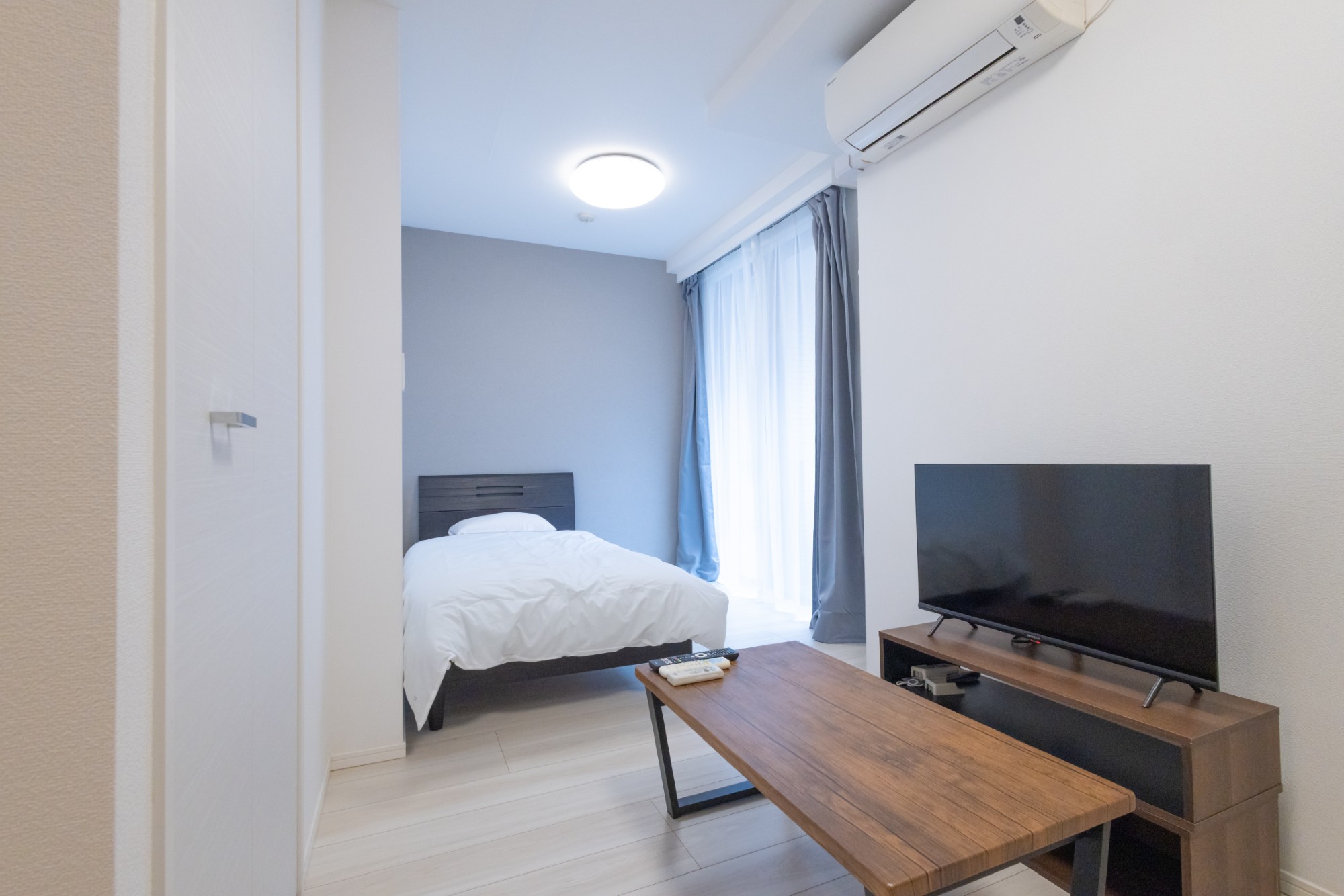 | 家具 | イス、カーテン付き、シーツ類、テーブル、テレビ台、デスク、ベッド、寝具一式 |