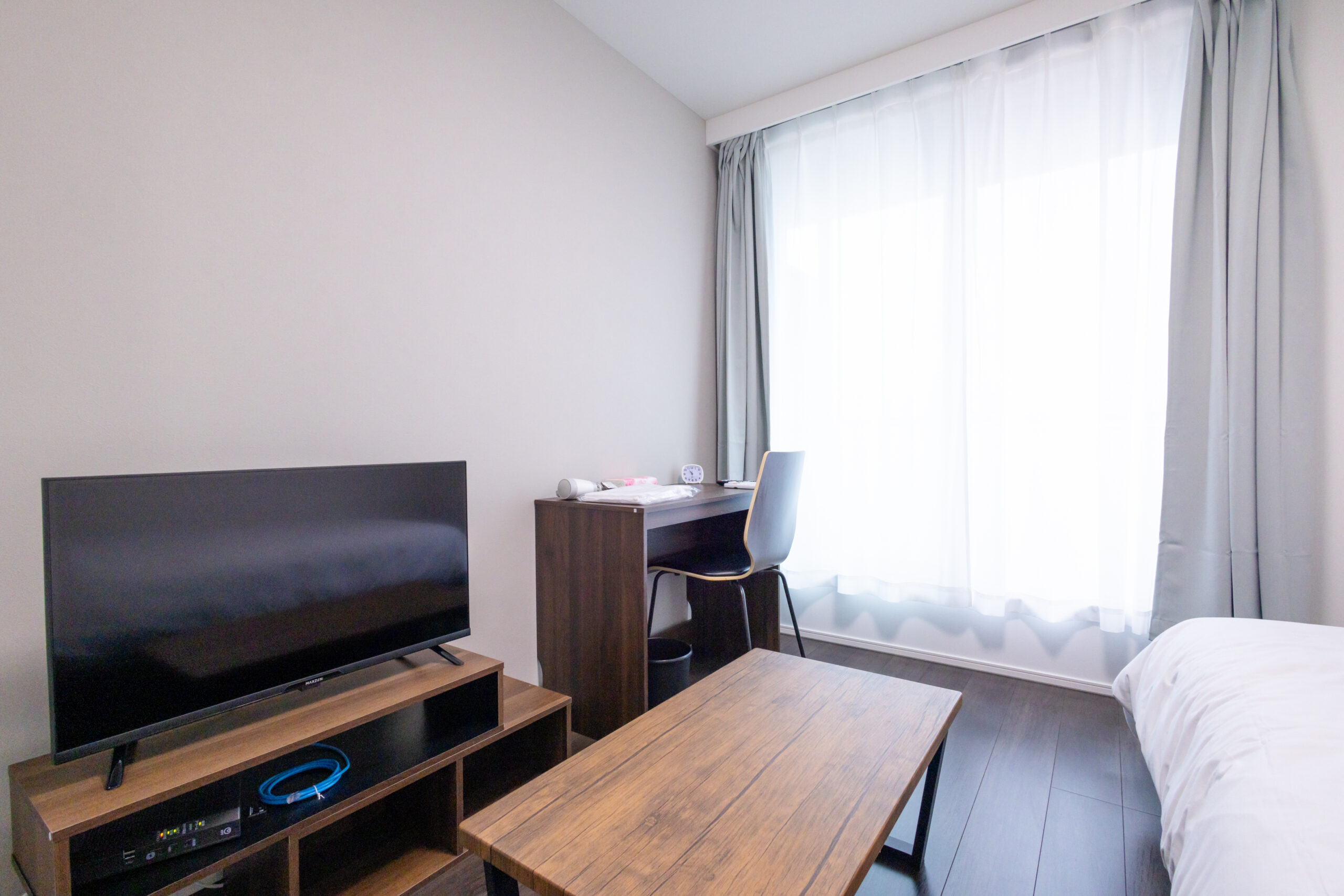 | 家具 | イス、カーテン付き、シーツ類、テーブル、テレビ台、デスク、ベッド、寝具一式 |
