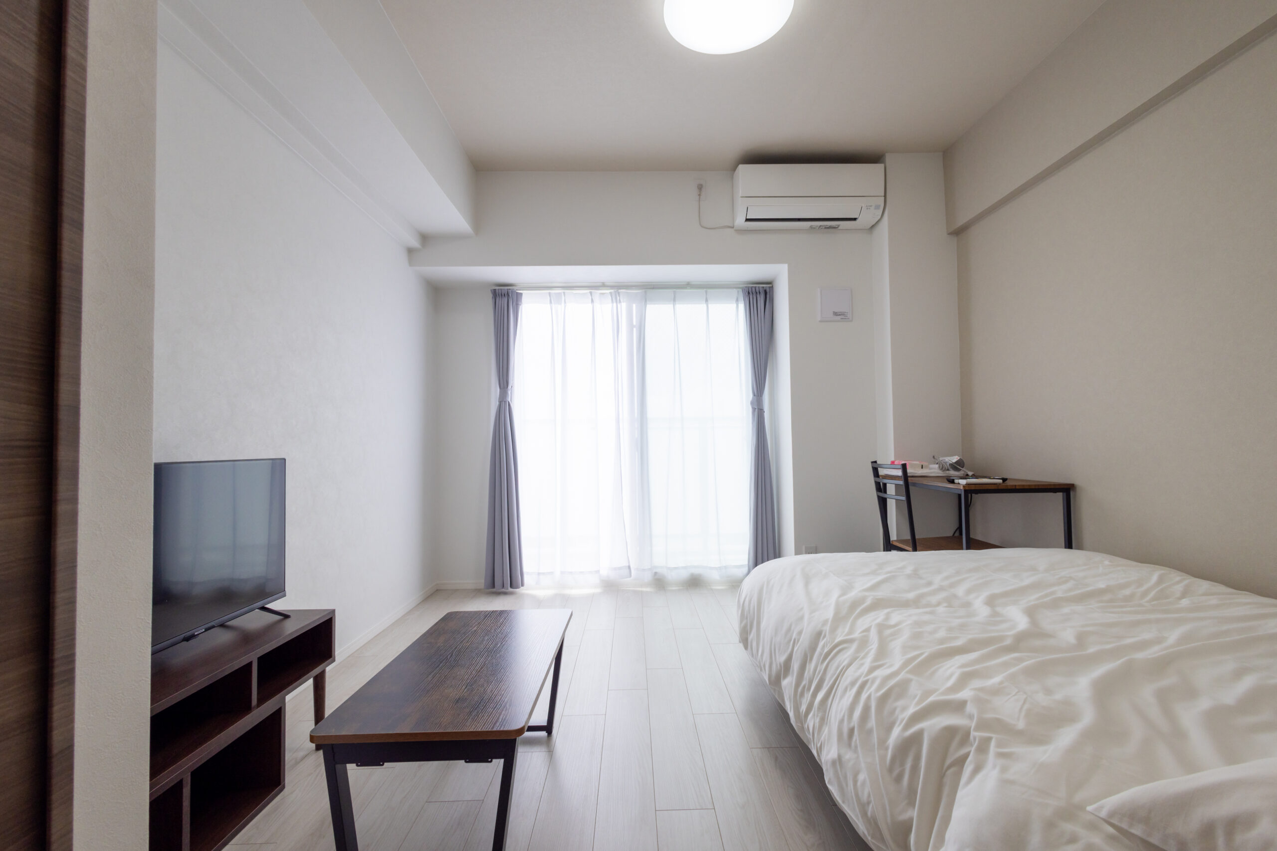 家具イス、カーテン付き、シーツ類、テーブル、テレビ台、デスク、ベッド、寝具一式