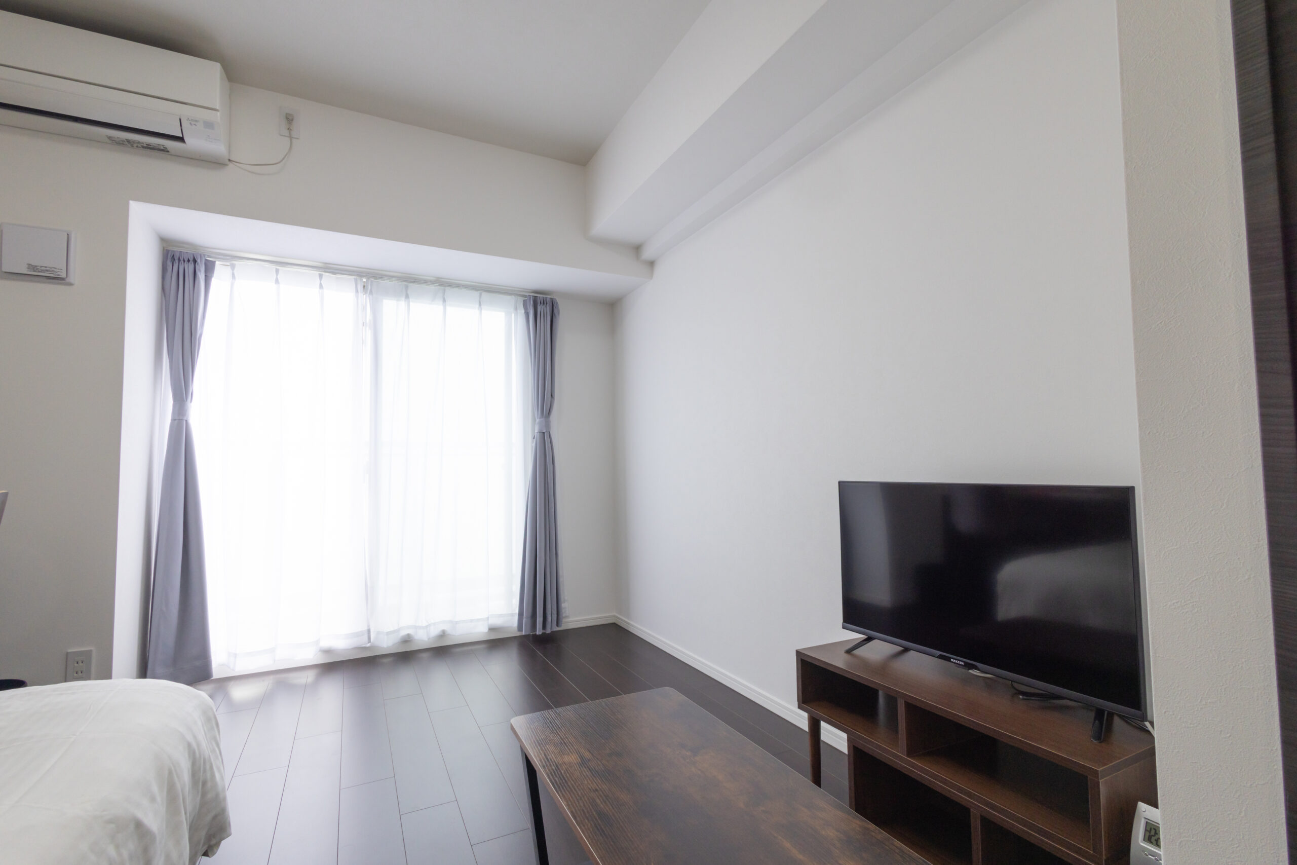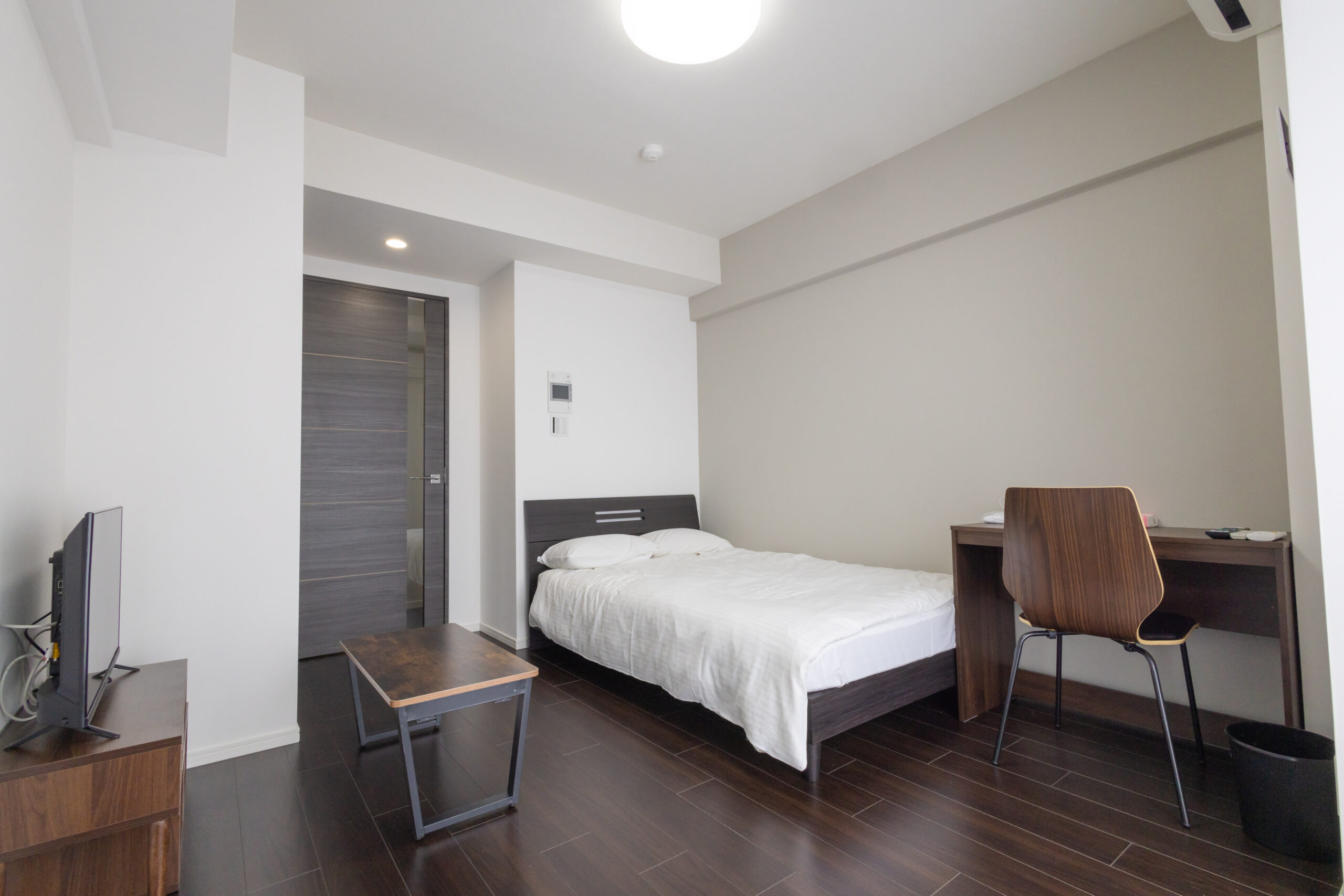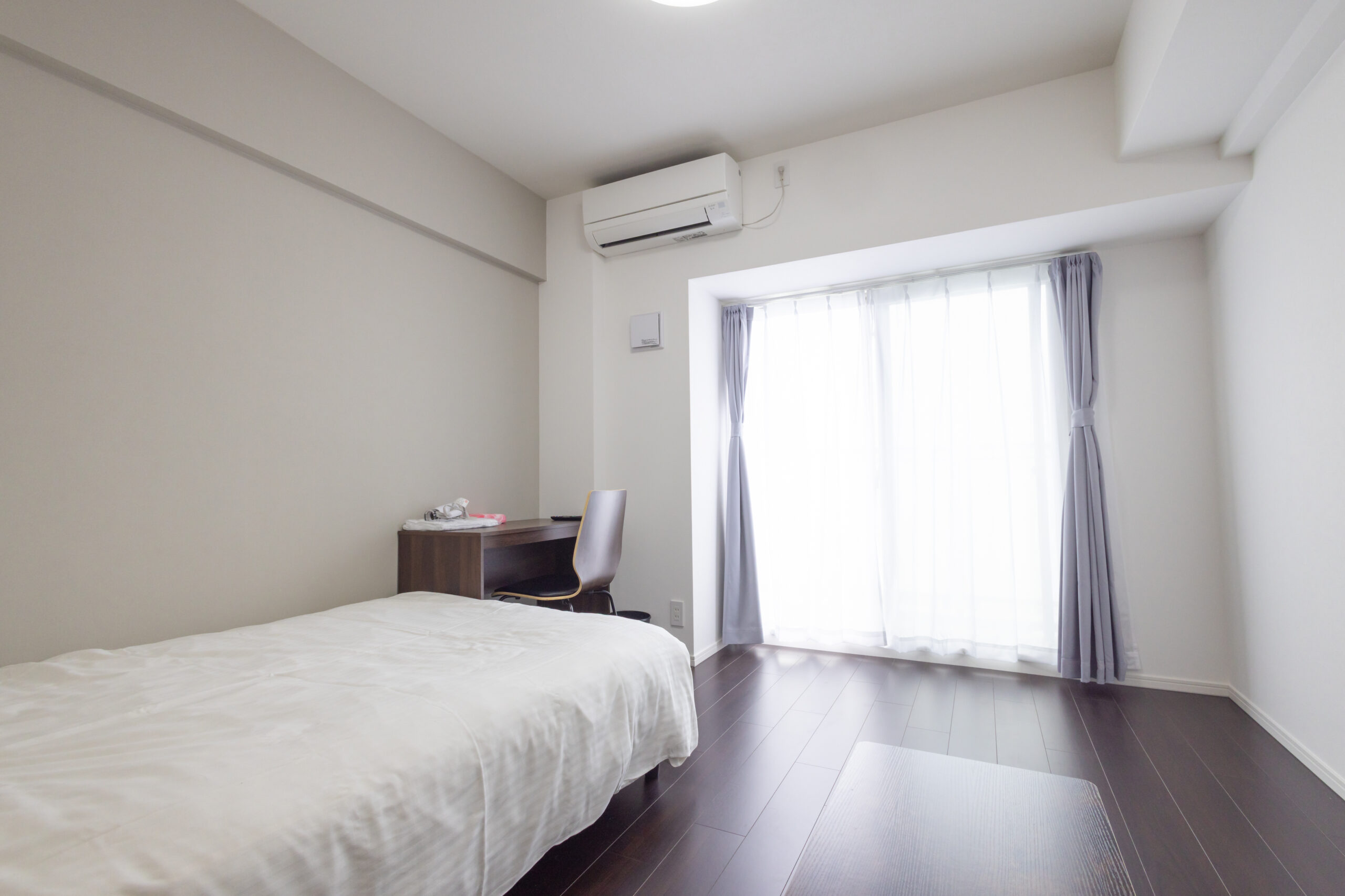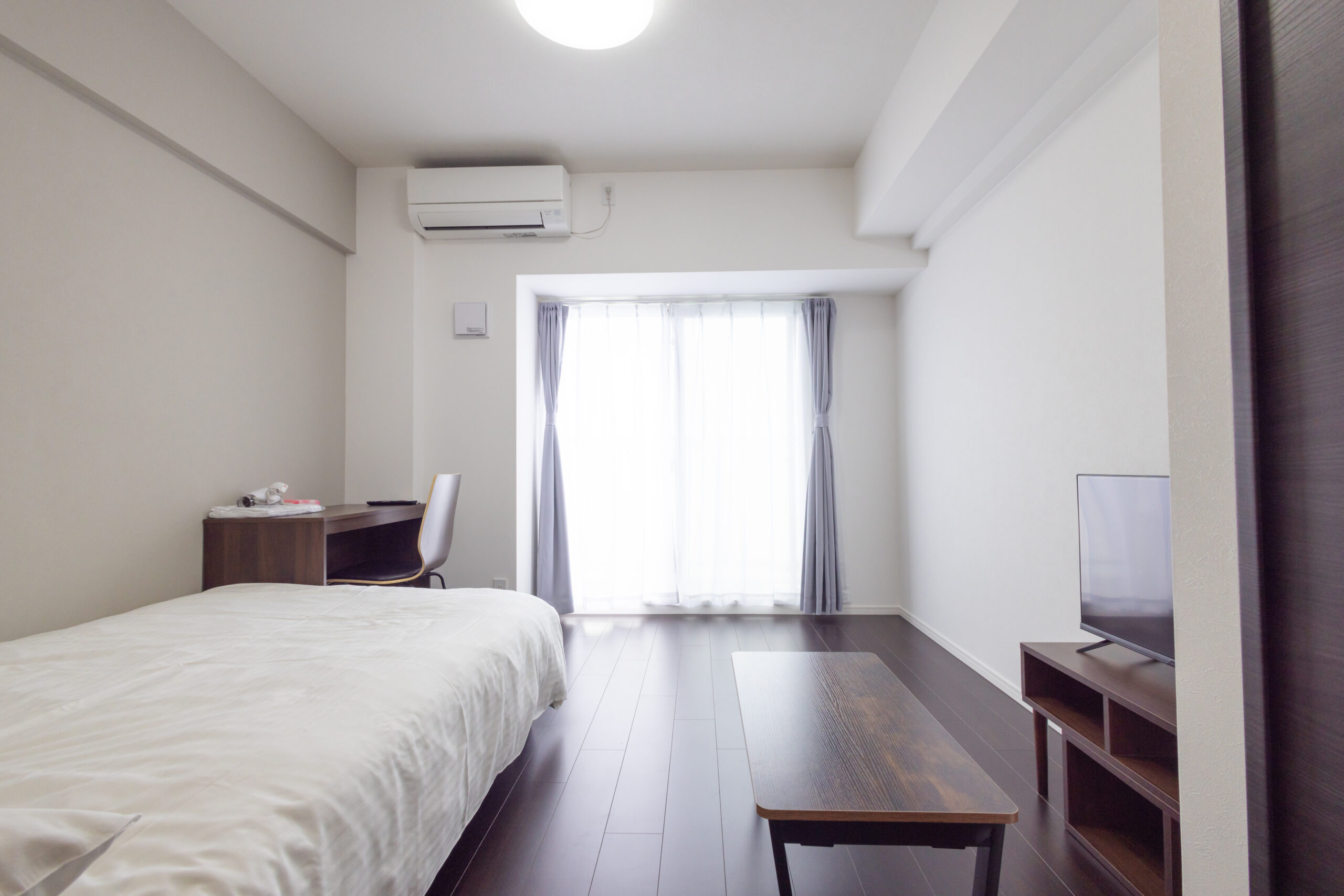 | 家具 | イス、カーテン付き、シーツ類、テーブル、テレビ台、デスク、ベッド、寝具一式 |