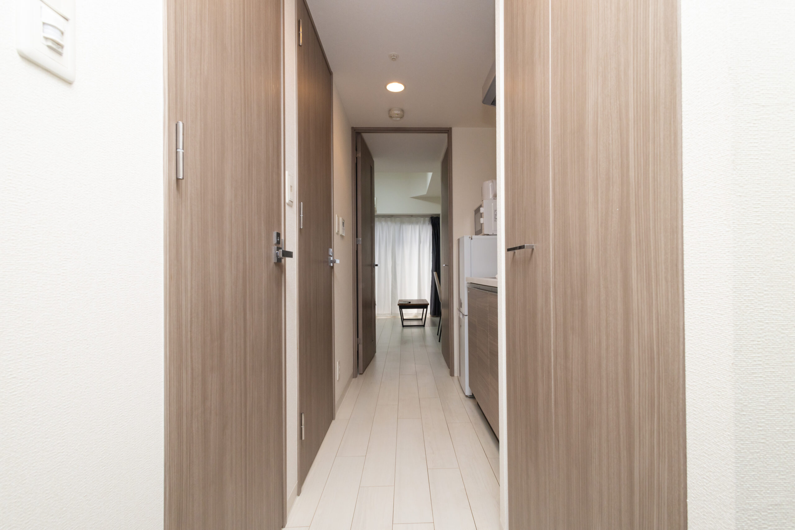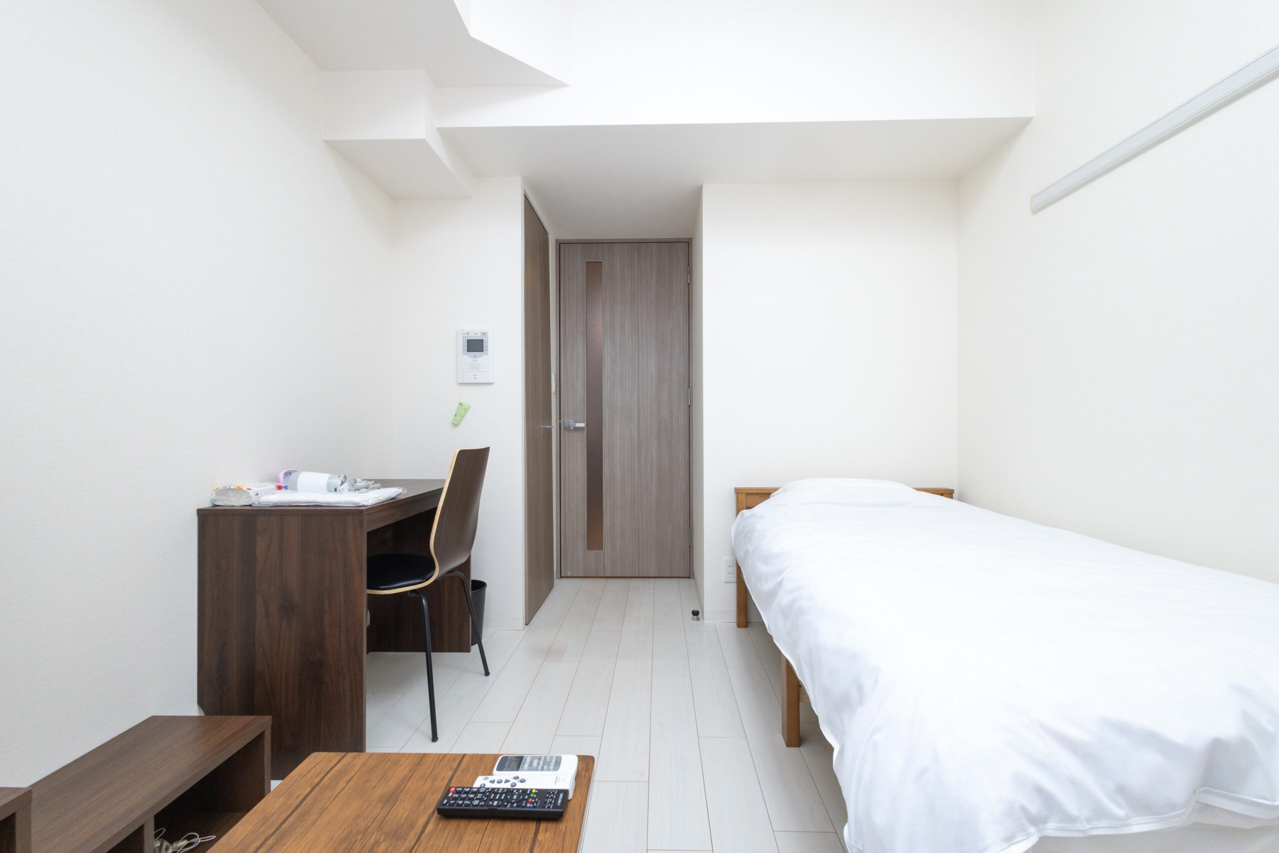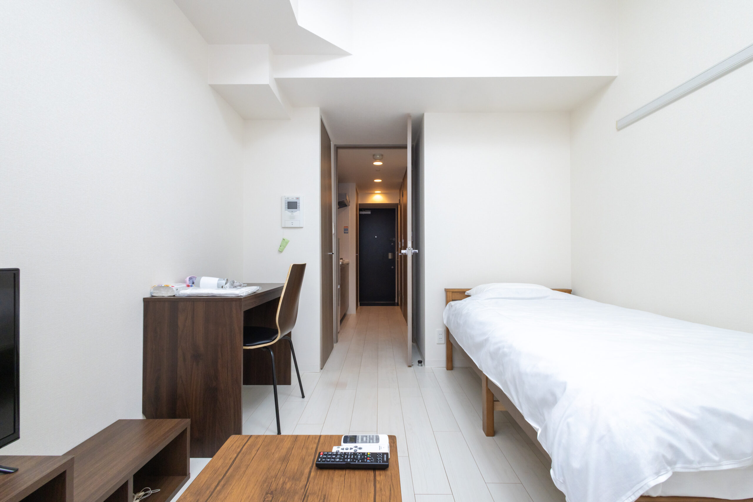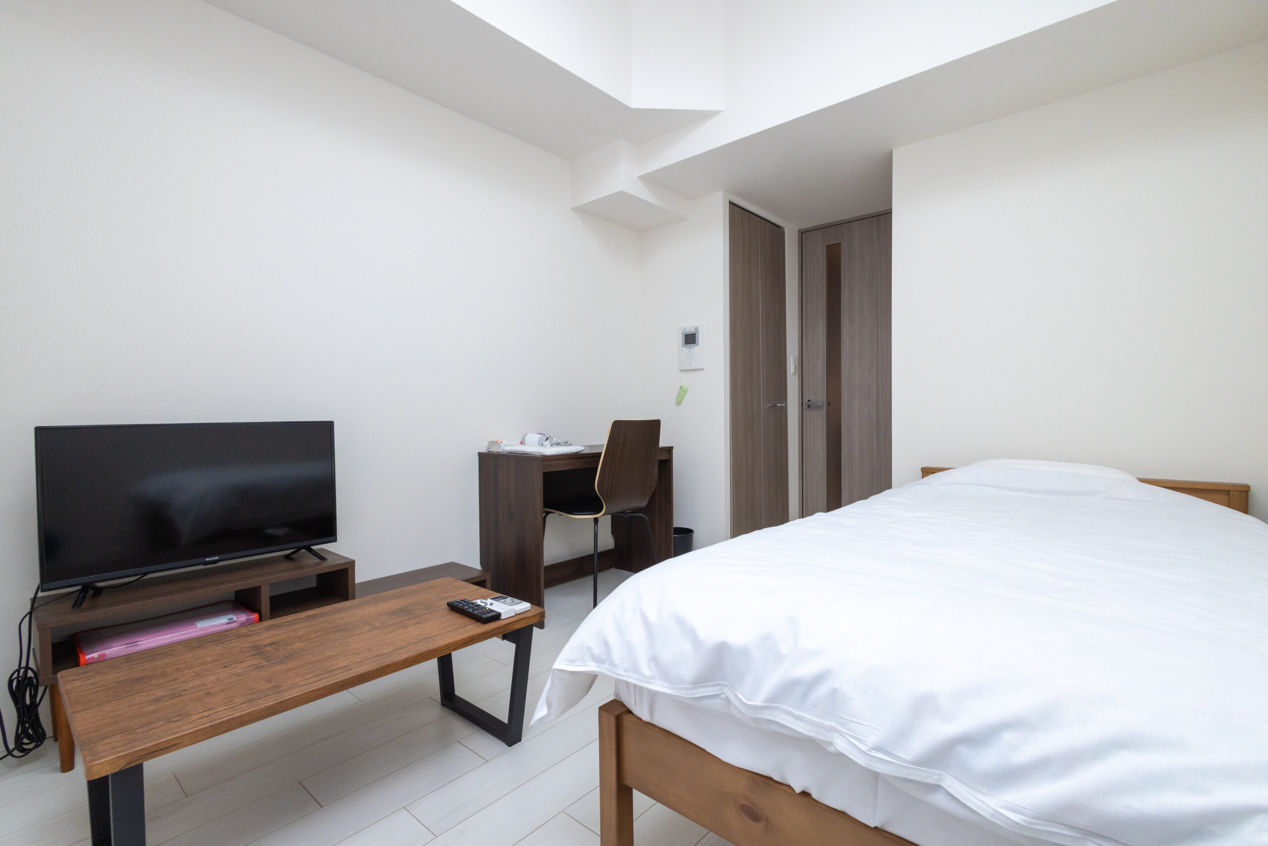 | 家具 | イス、カーテン付き、シーツ類、テーブル、テレビ台、デスク、ベッド、寝具一式 |