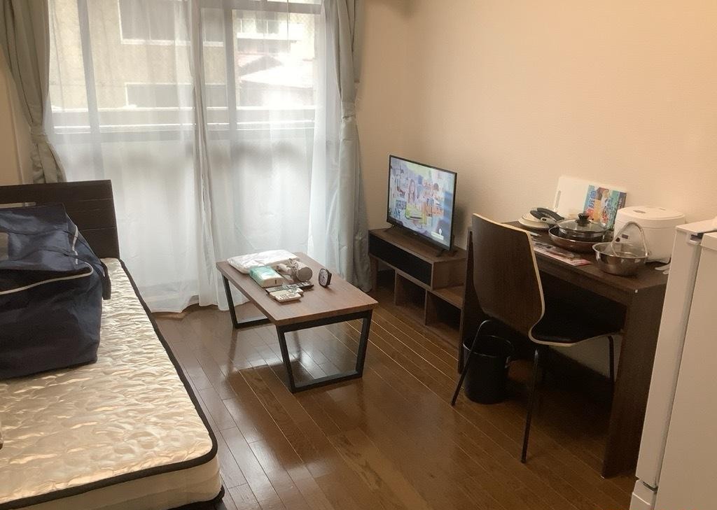家具イス、カーテン付き、シーツ類、テーブル、テレビ台、デスク、ベッド、寝具一式