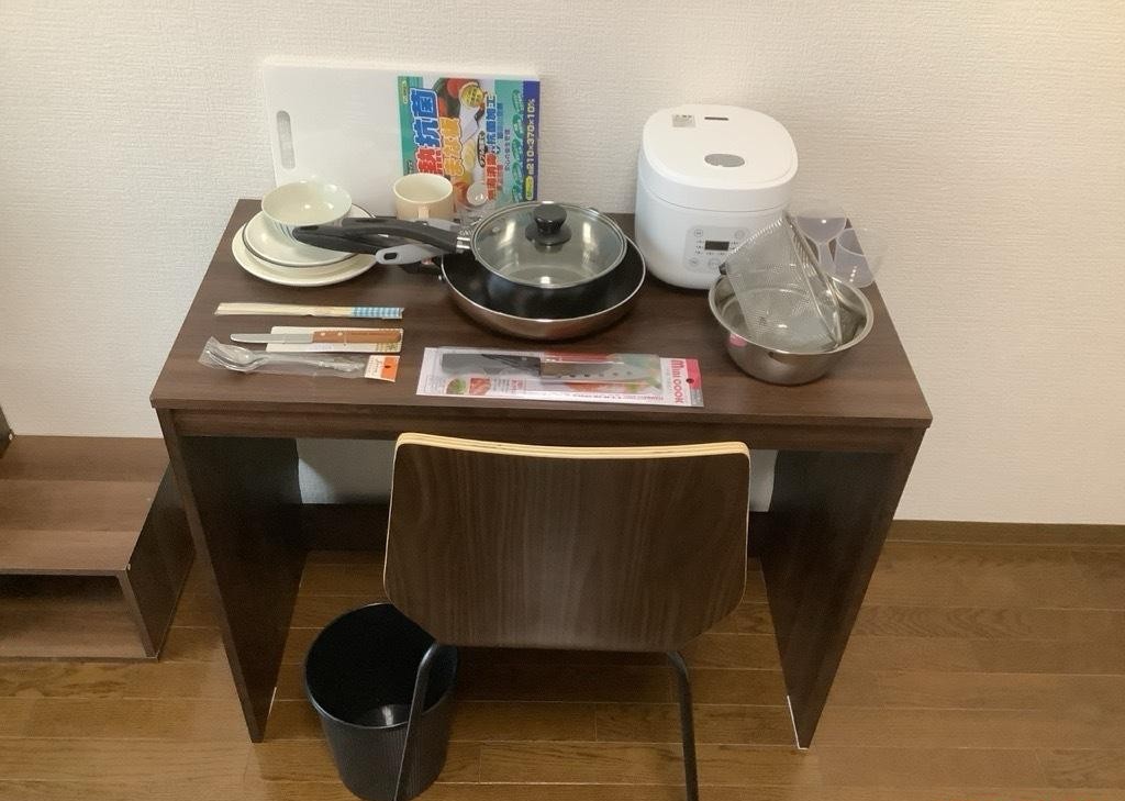 備品、消耗品ゴミ箱、ティッシュ、ハンガー、靴べら、雑巾、物干し竿、目覚まし時計