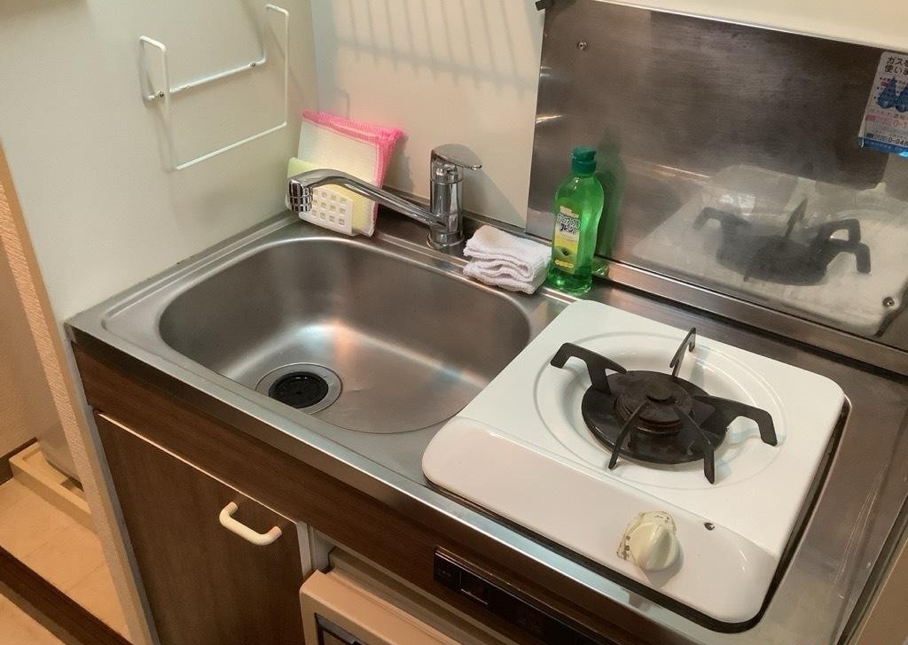 キッチン類お玉、まな板、ガスキッチン、ガスコンロ、キッチン洗剤、システムキッチン、スポンジ、スポンジ入れ、フライパン、フライ返し、三角コーナー、食器類、鍋、布巾、包丁、ボール・ザル