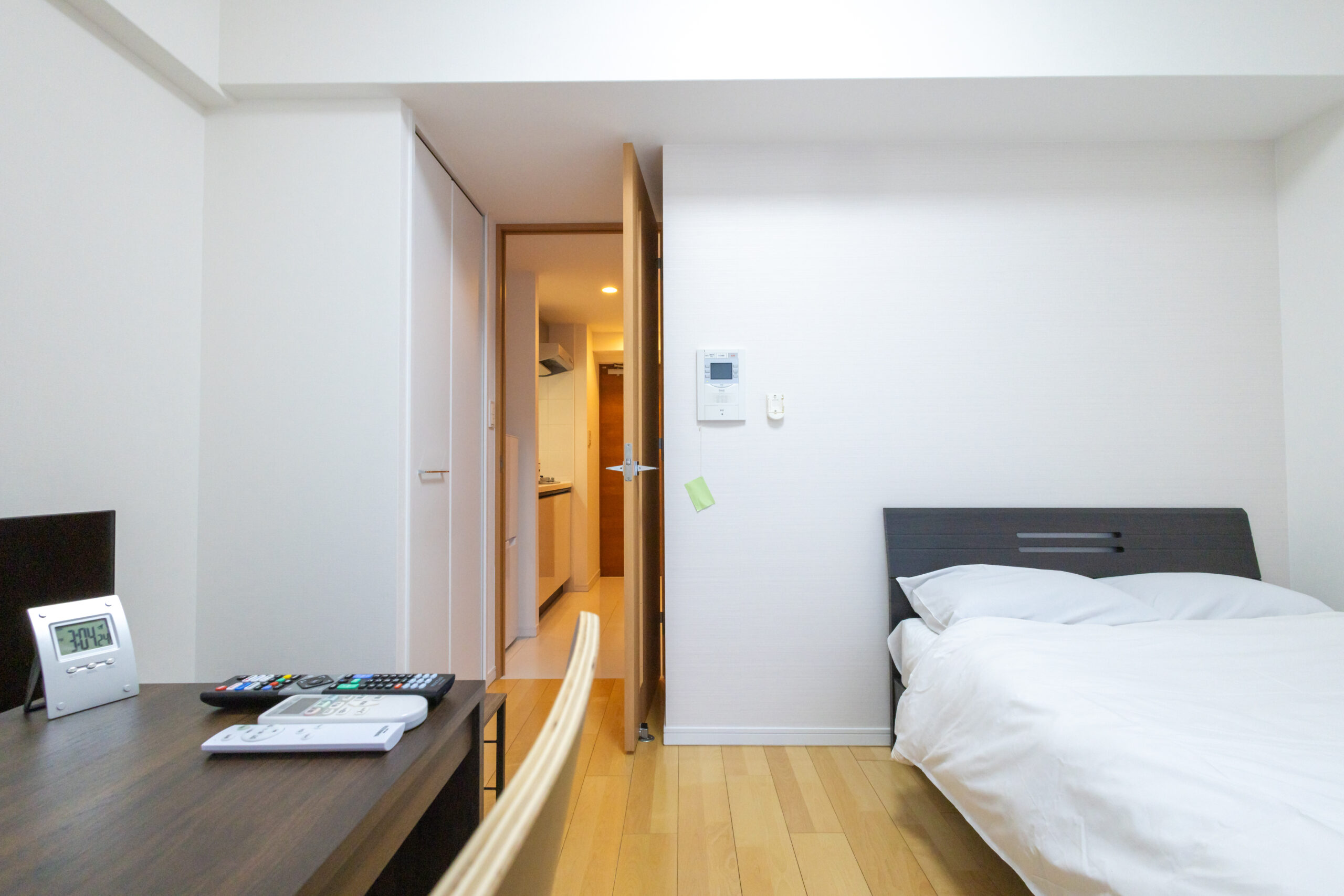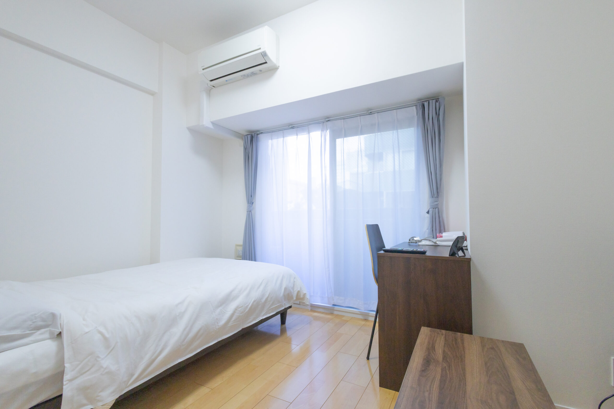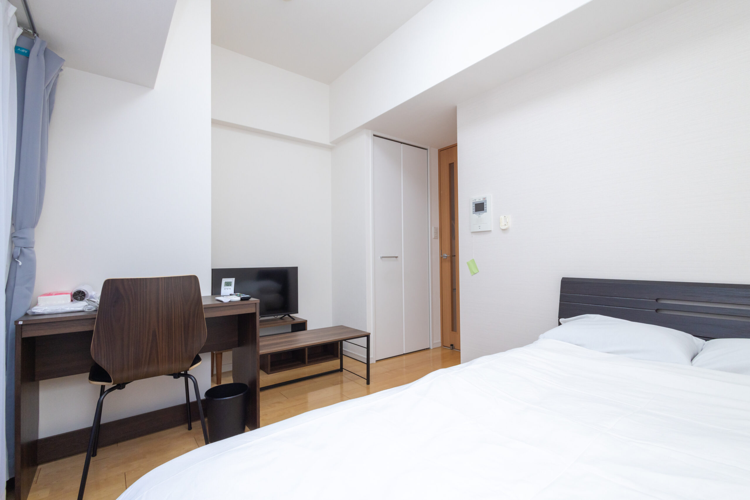 | 家具 | イス、カーテン付き、シーツ類、テーブル、テレビ台、デスク、ベッド、寝具一式 |