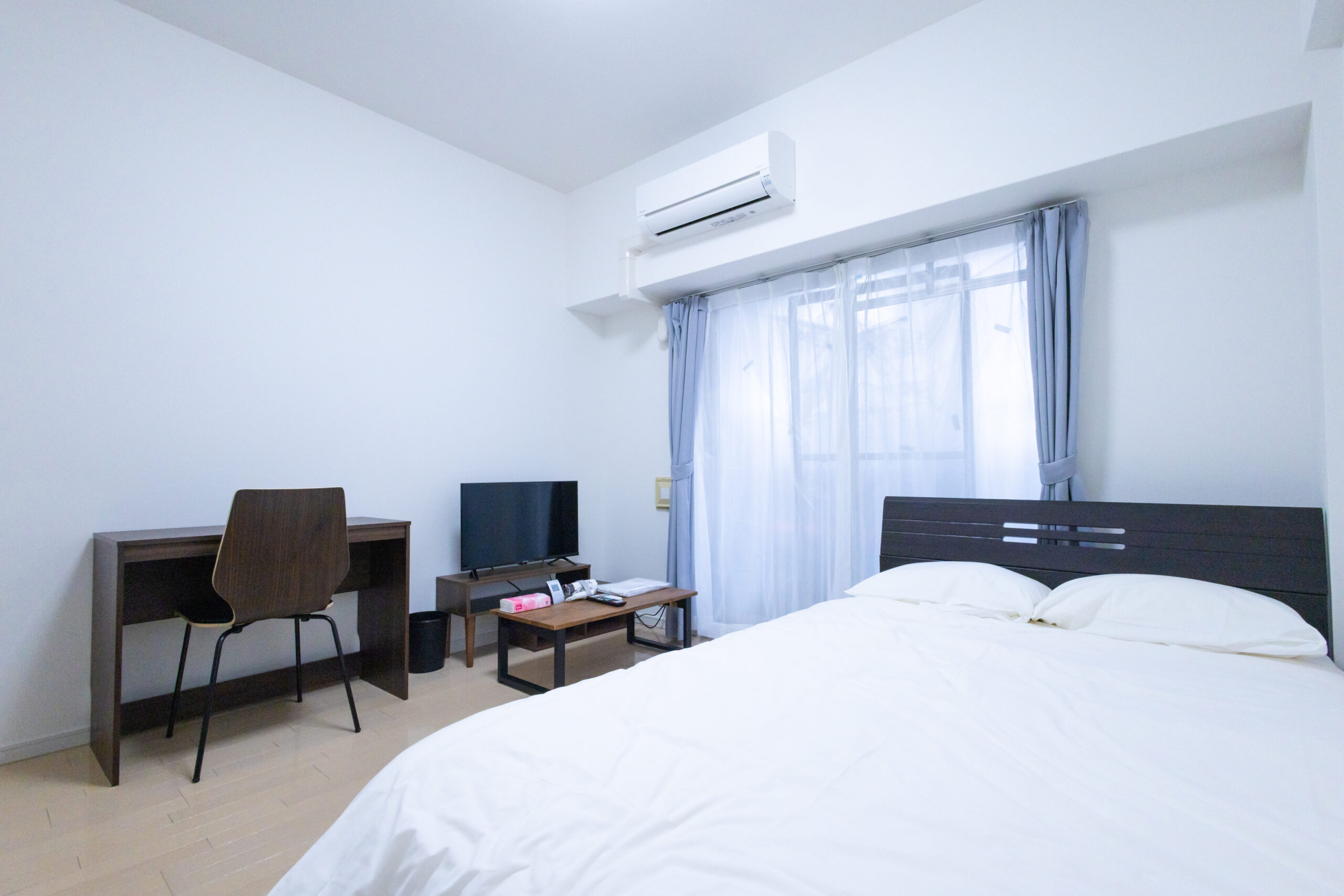 | 家具 | イス、カーテン付き、シーツ類、テーブル、テレビ台、デスク、ベッド、寝具一式 |