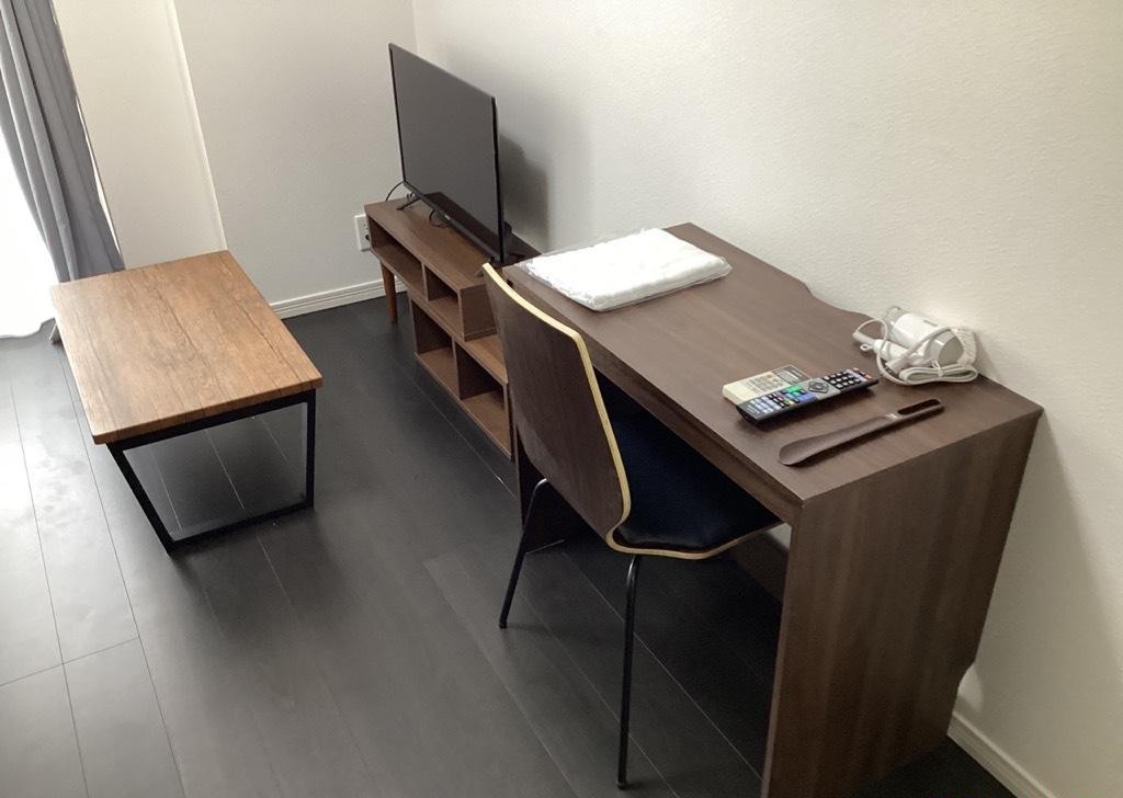 | 家具 | イス、カーテン付き、シーツ類、テーブル、テレビ台、デスク、ベッド、寝具一式 |