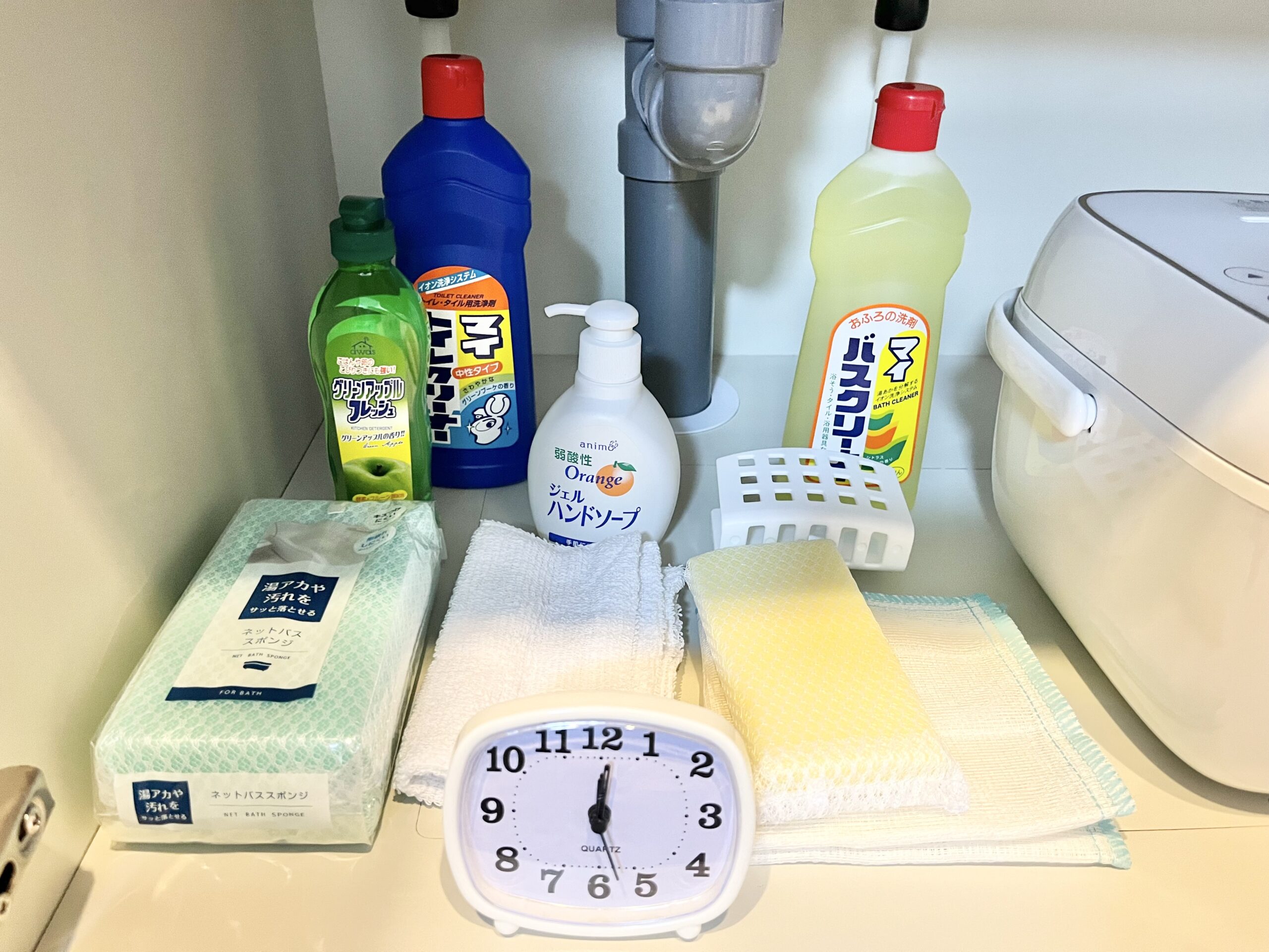 | 洗剤・雑貨セット (Cセット) | 風呂洗剤 トイレ洗剤 台所洗剤 ハンドソープ 風呂スポンジ 台所スポンジ スポンジ入れ 目覚まし時計 布巾 雑巾 | 3800円 |