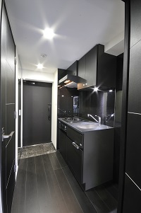 キッチン類お玉、まな板、ガスキッチン、ガスコンロ、キッチン洗剤、システムキッチン、スポンジ、スポンジ入れ、フライパン、フライ返し、三角コーナー、食器類、鍋、布巾、包丁、ボール・ザル