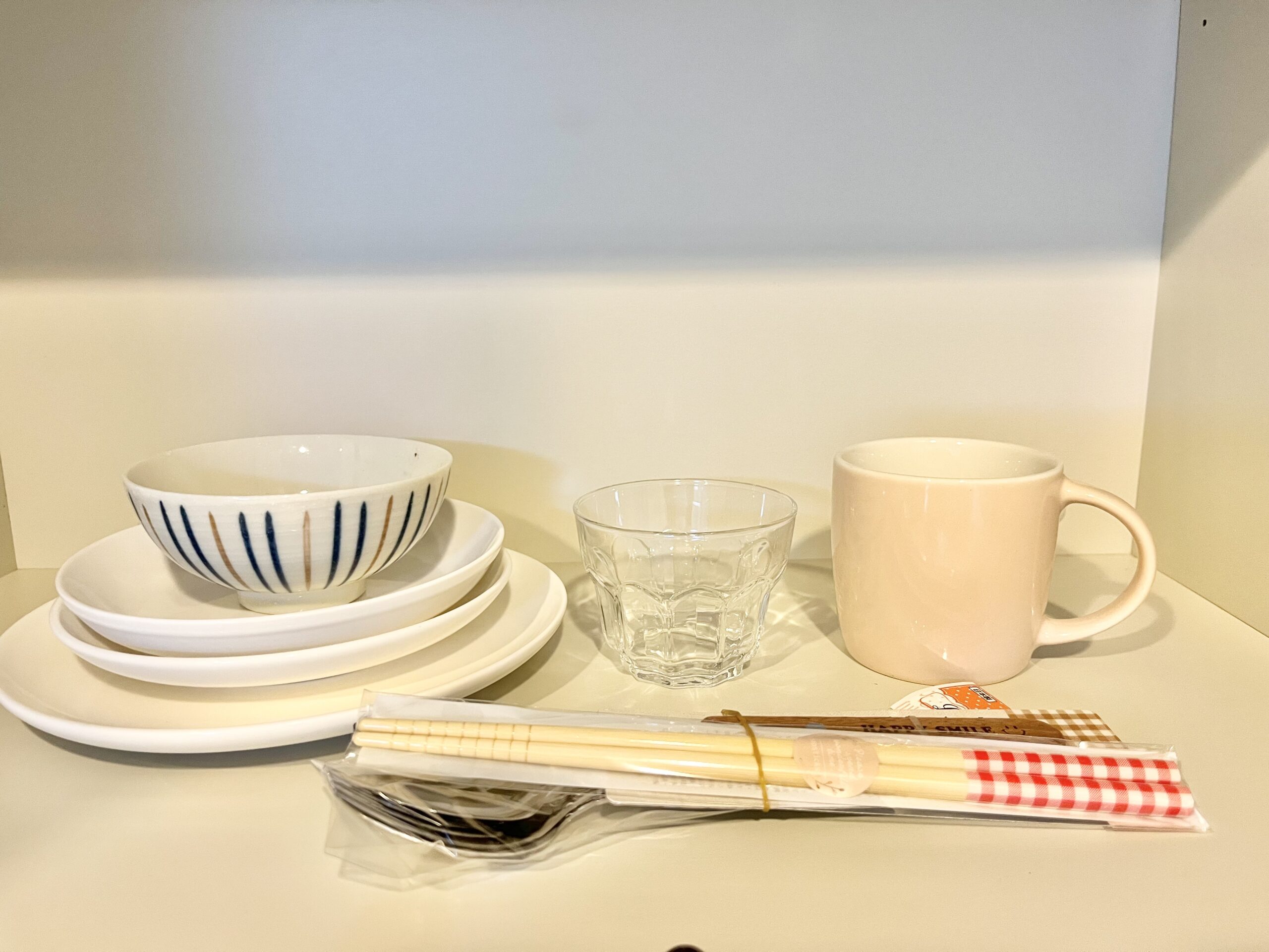 備品、消耗品ゴミ箱、ティッシュ、ハンガー、靴べら、雑巾、室内物干し、物干し竿、目覚まし時計