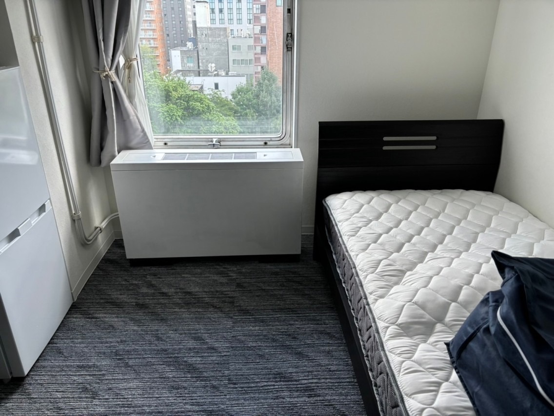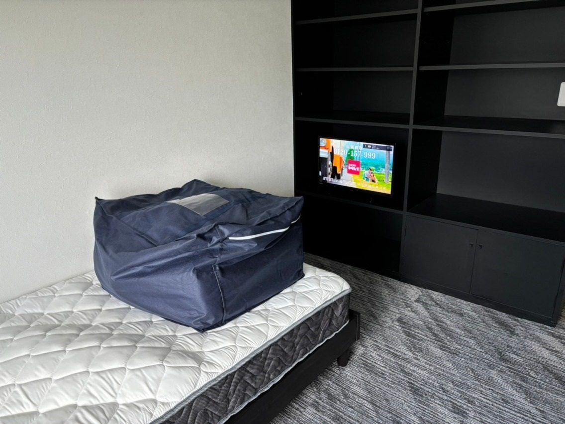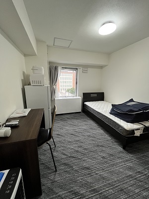 | 家具 | イス、カーテン付き、シーツ類、テレビ台、デスク、ベッド、寝具一式 |