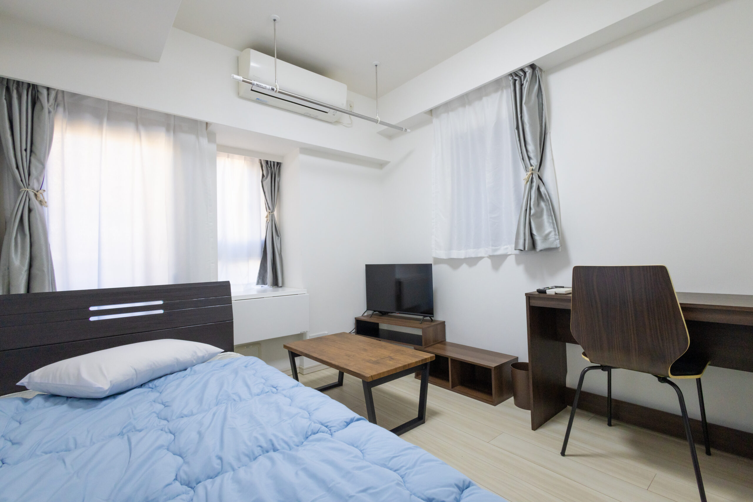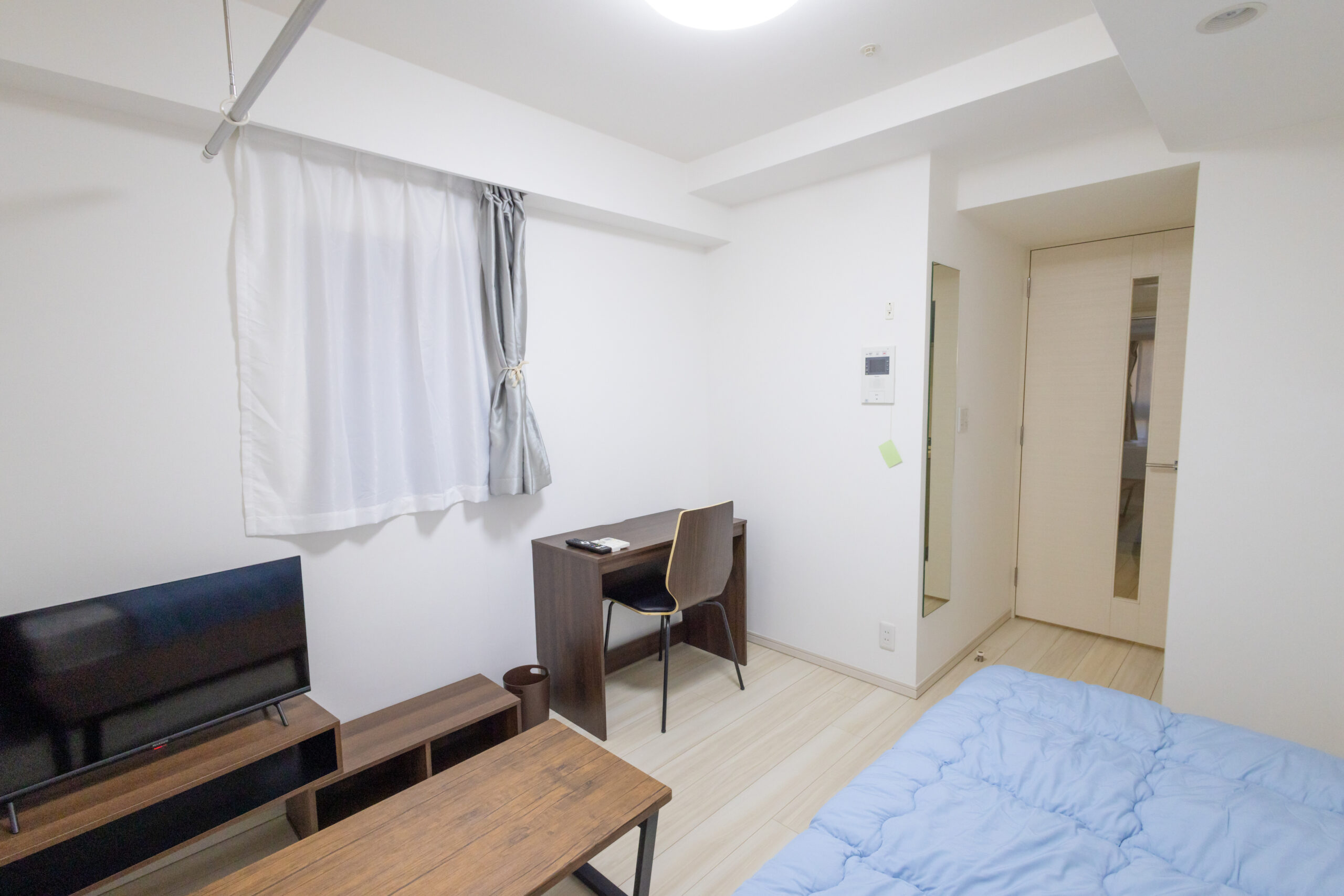 | 家具 | イス、カーテン付き、シーツ類、テーブル、テレビ台、デスク、ベッド、寝具一式 |