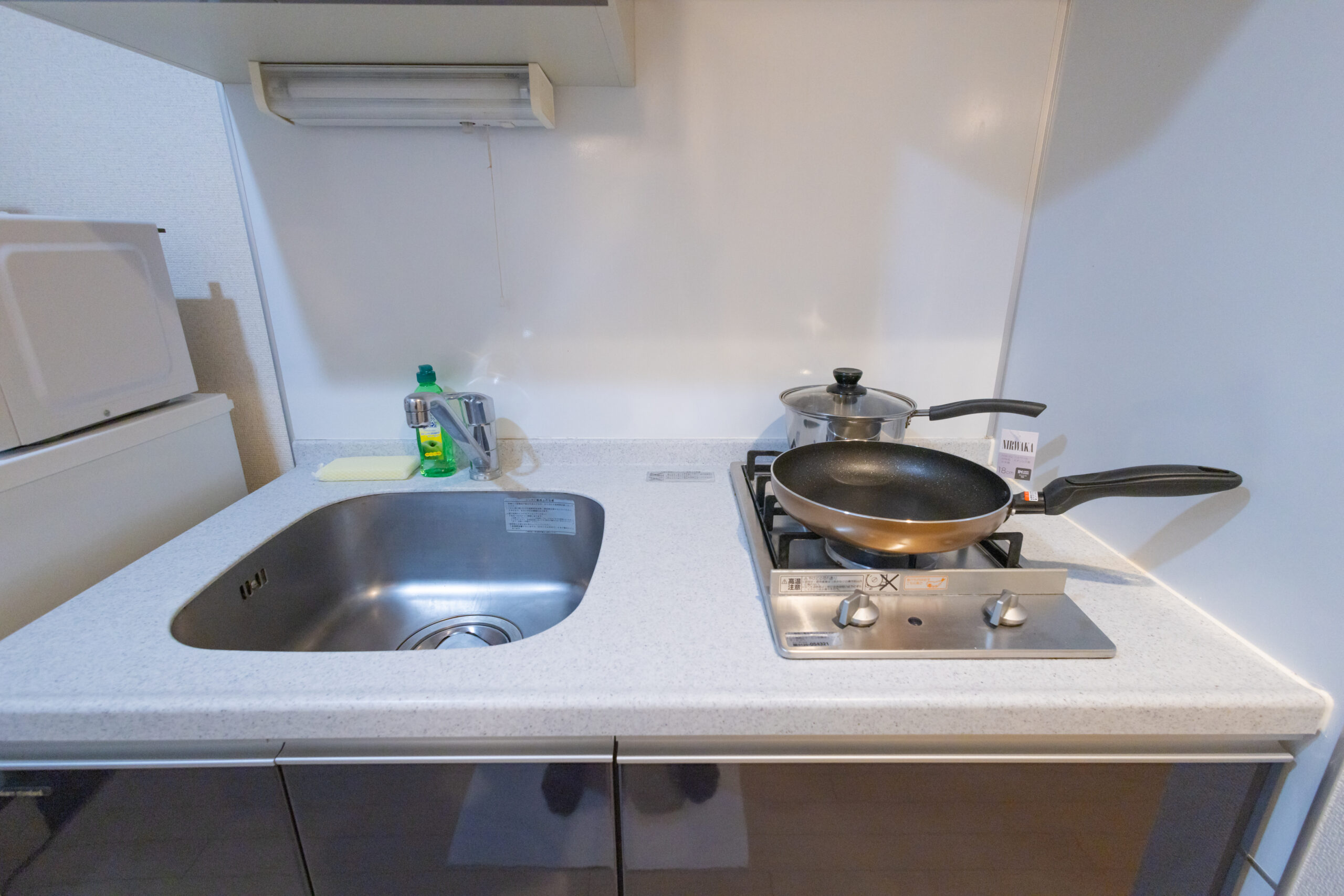 | キッチン類 | お玉、まな板、ガスキッチン、ガスコンロ、キッチン洗剤、システムキッチン、スポンジ、スポンジ入れ、フライパン、フライ返し、三角コーナー、食器類、鍋、布巾、包丁、ボール・ザル |