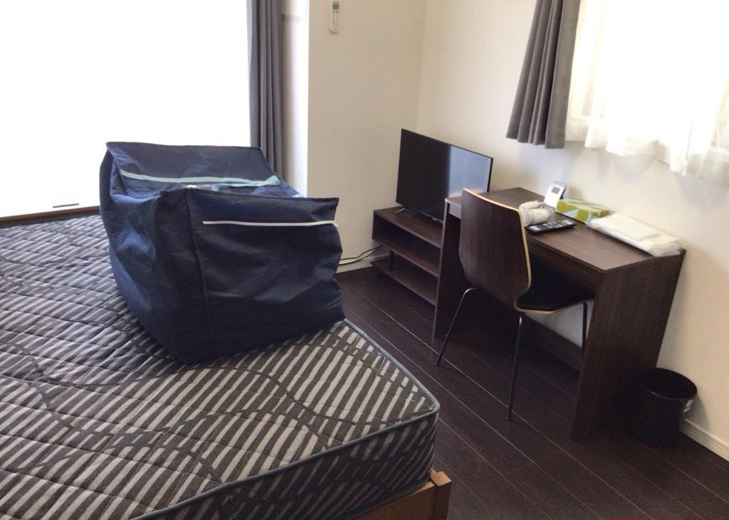 | 家具 | イス、カーテン付き、シーツ類、テーブル、テレビ台、デスク、ベッド、寝具一式 |